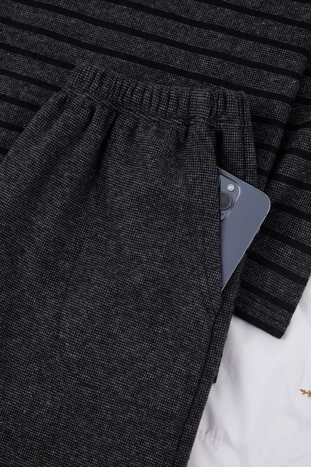 ست لباس خواب مردانه یقه دکمهدار طرحدار ذغالی trendyolmilla
