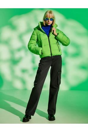 پالتو زنانه کلاه دار سبز رنگ طرح دار happiness istanbul