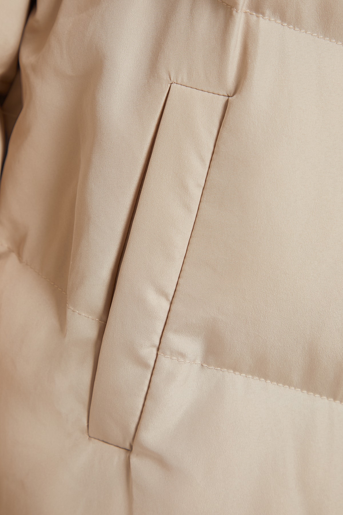 کاپشن زنانه پفی بلند ضد آب بژ trendyolmilla