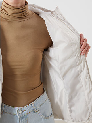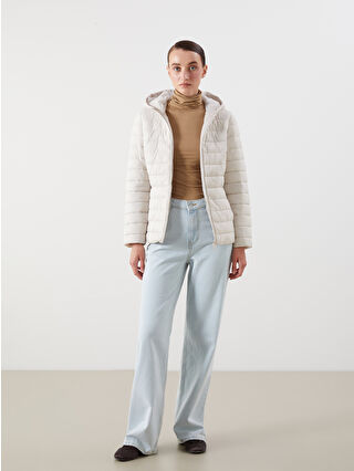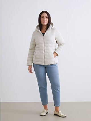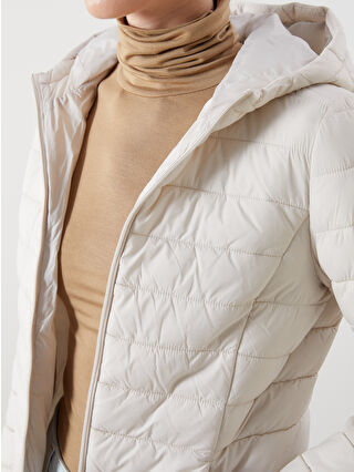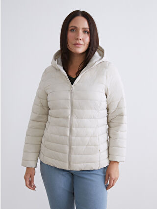کاپشن بادی ساده کلاه دار زنانه سفید LCWAIKIKI