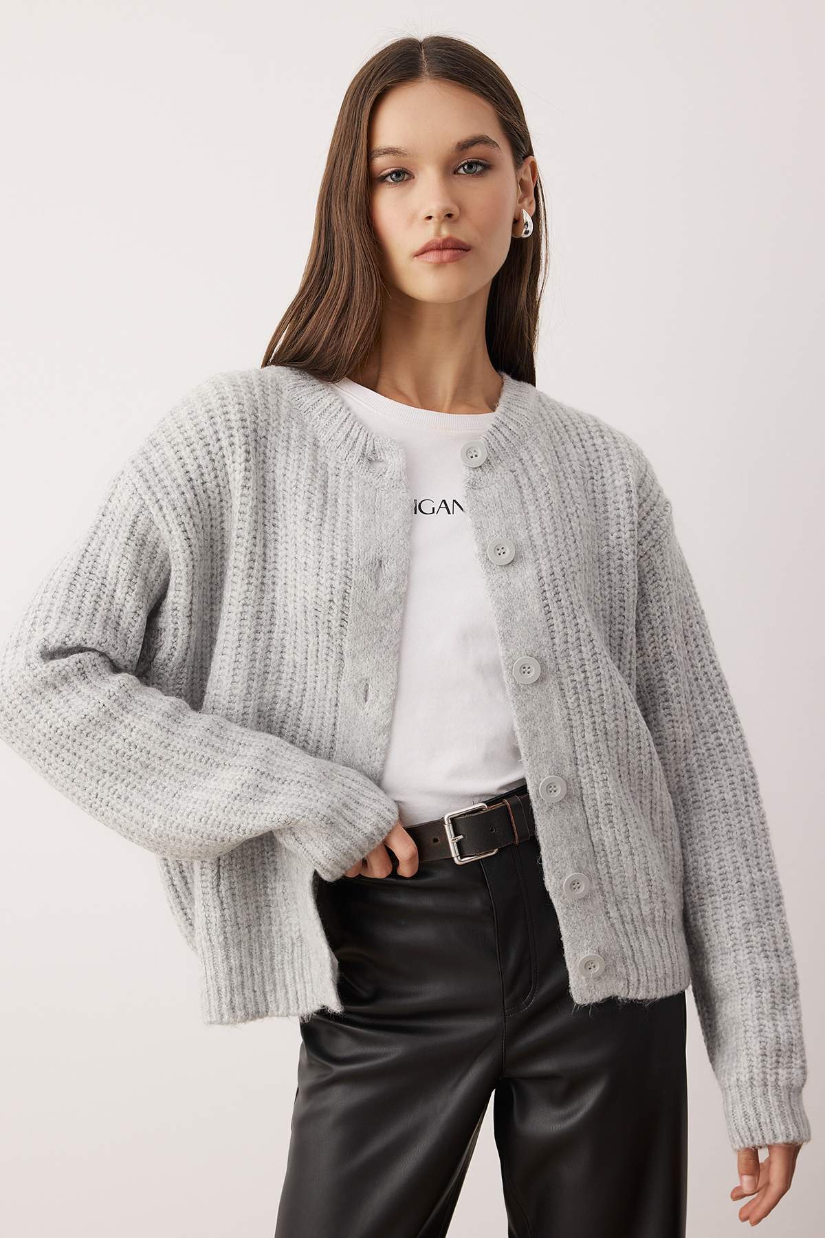 ژاکت زنانه بافتنی نرم خاکستری trendyolmilla